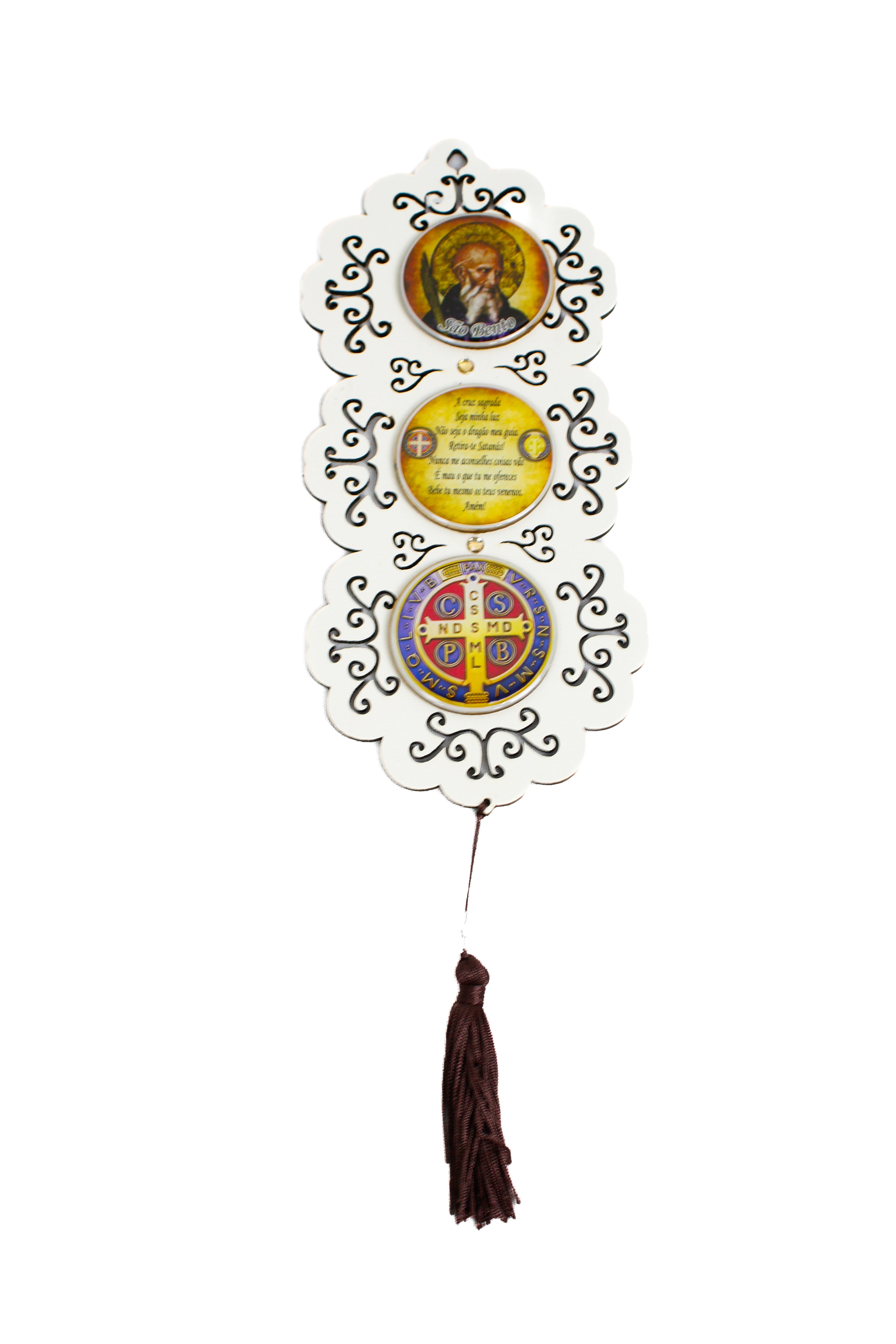 Transforme a entrada da sua casa em um espaço de bênçãos com o Escapulário de Porta de São Bento. Com design elegante e acabamento artesanal, essa peça carrega o poderoso símbolo da cruz de São Bento, reconhecido por sua força contra o mal e proteção espiritual.